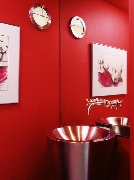 مزيج رائع من الفضة والأحمر في الحمام المعاصر [التصميم: Venture Architecture]
