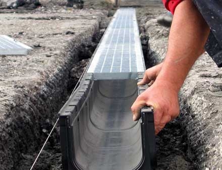 - طريقة أكثر عقلانية وموثوقية لمنع موقعك من التحول إلى مستنقع ، وأساس "الطفو" هو ترتيب نظام تصريف سطح أكثر جدية ، والذي يتضمن وضع قنوات بلاستيكية أو مزاريب خرسانية مستطيلة الشكل حول المحيط (تصريف خطي) . الأنابيب البلاستيكية غير مكلفة وتأتي في عدة أنواع ، لكنها تبدو جميعًا مثل أنصاف أنبوب مقطوع بالطول. إنها تسمح لك بتركيب المنفذ بسرعة على مساحات كبيرة باستخدام أدوات تثبيت ومحولات خاصة. من الأعلى ، القنوات مسدودة بشبكات الحماية ؛