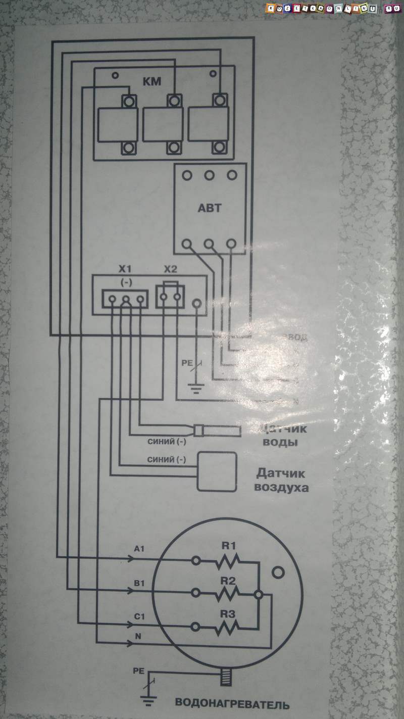 كما ترون ، تحتوي هذه الغلاية على مخطط توصيل "Star" ، مما يعني أن عناصر التسخين مصممة لجهد 220 فولت ، كما يتم تأكيد ذلك من خلال الفحص المباشر لجهات الاتصال لتوصيل الأسلاك بعناصر التسخين ، فهي أيضا على استعداد للتواصل مع نجم. يتم توصيل جهات الاتصال الخاصة بهم لتوصيل الموصل المحايد بواسطة وصلة مرور ، وسيتم توصيل المراحل بجهات الاتصال المجانية بدورها ، ولكل منها اتصالها الخاص.