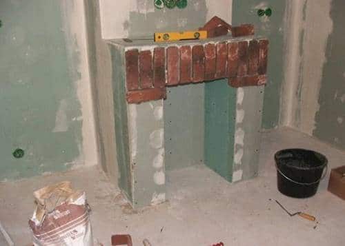 يتم بعد ذلك تغليف الموقد الكهربائي ، وهو مقطع فيديو يمكنك عرضه على الإنترنت ، بألواح من الحوائط الجافة ، ومن الضروري أيضًا مراعاة وجود مأخذ كهربائي بالقرب من موقع الموقد