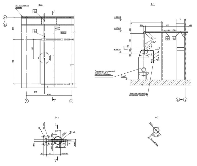قبل عمل ولحام الجدار الأمامي لغرف الاحتراق ، يتم عمل فتحتين فيه. سيتم تصميمها لأنابيب الهواء الداخل والخارج. مخطط المرجل الانحلال الحراري